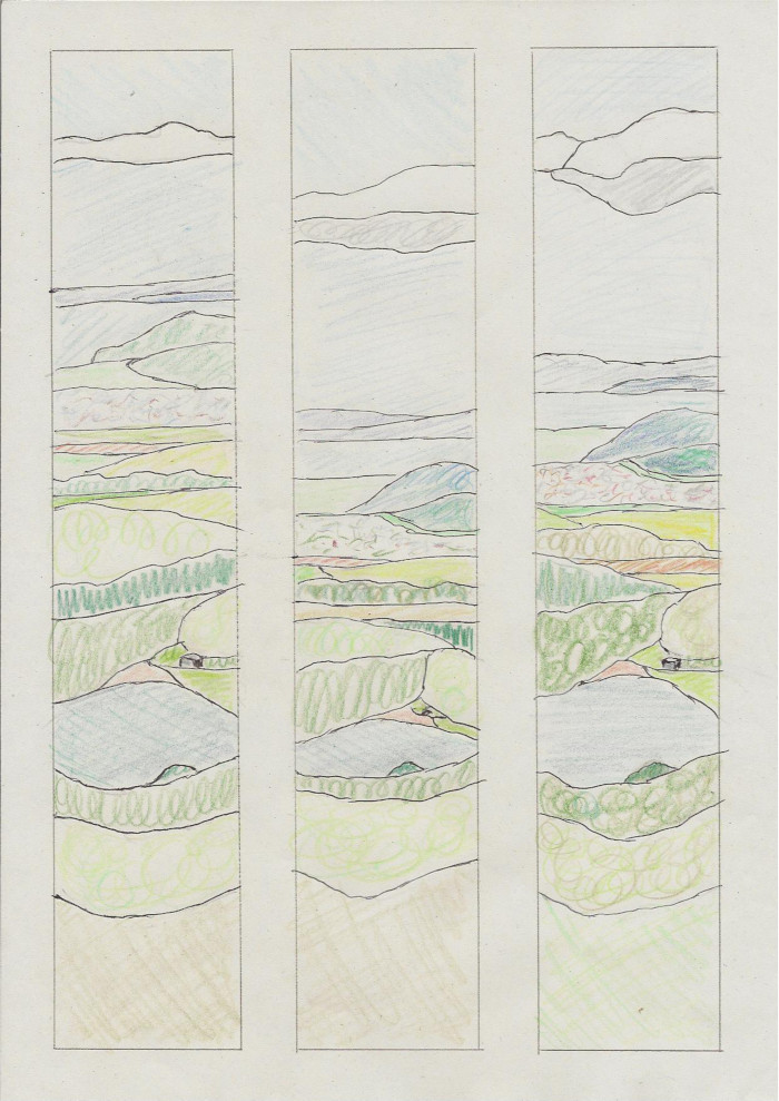 | 3 Entwürfe für Bleiverglasung mit Landschaftsmotiv | |