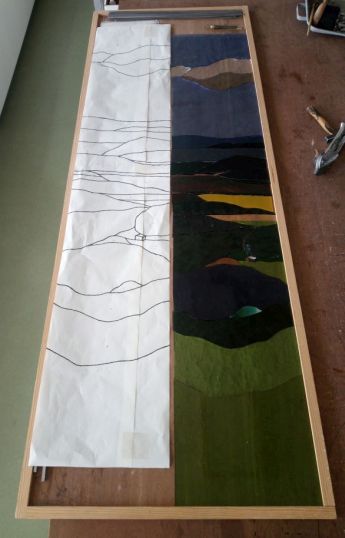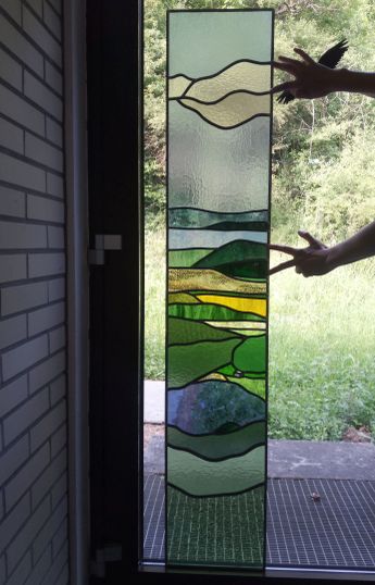 | Zuschnitt der Bleiverglasung mit Krufter Waldsee | |