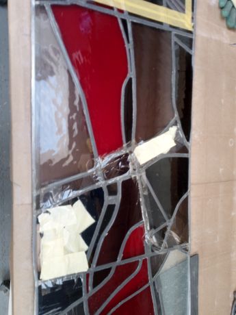 ![]() Für eine Schlosserei aus Bad Kreuznach hat AvD-Glas diese gebrochene Isolierglasscheibe aufgesägt, die Bleiverglasung verkleinert und neu in Isolierglas eingebaut. |